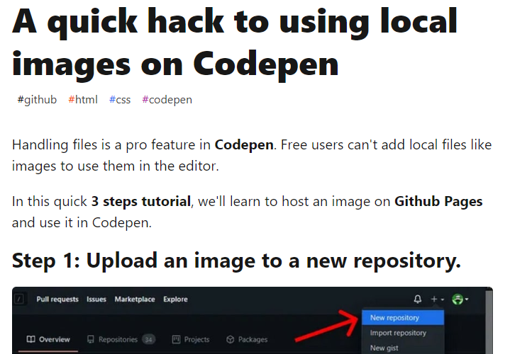 https://dev.to/ljcdev/a-quick-hack-to-using-local-images-on-codepen-4cfp