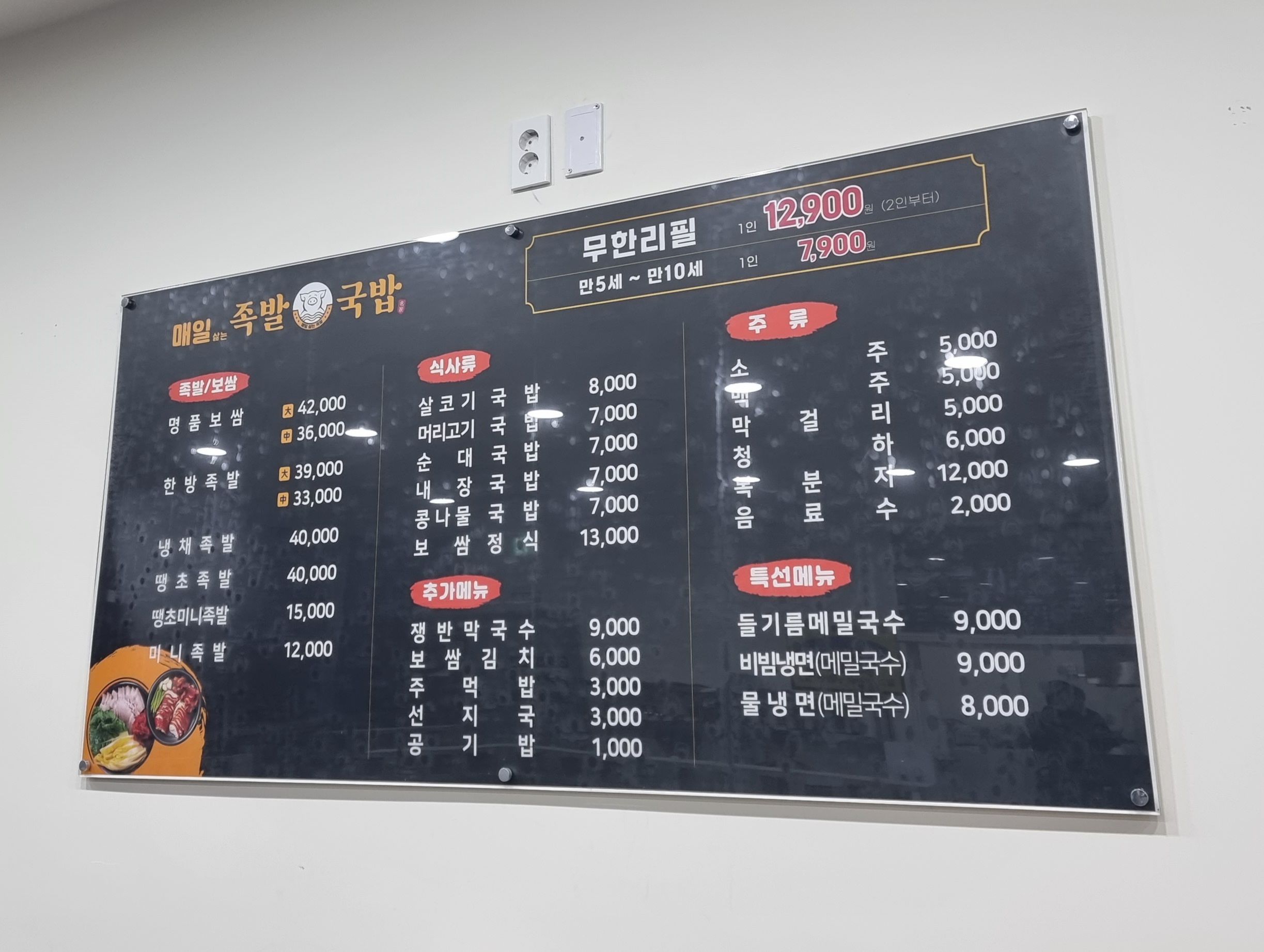 - 족발+보쌈 무한리필 인당 12,900원. 가격대가 괜찮음